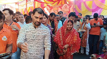गढ़वा: दशहारा पर्व के अवसर पर गढ़देवी मंदिर परिसर में जय मां शेरावाली भंडारा की ओर से भव्य भंडारा का आयोजन किया जाता है। प्रत्येक वर्ष की भांति इस वर्ष भी जय मां शेरावाली भंडारा की ओर से भव्य भंडारा का आयोजन किया गया। इस भंडारा का उद्घाटन डीसी दिनेश कुमार यादव, एसपी अमन कुमार, एसडीओ संजय कुमार,अनुमंडल पुलिस पदाधिकारी नीरज कुमार, युवा समाजसेवी राकेश पाल, जिप अध्यक्ष शांति देवी, भंडारा के अध्यक्ष सुनील कुमार उर्फ नागर ने संुयक्त रूप से मां दुर्गा के तस्वीर पर मार्ल्यापण कर किया। इस दौरान नव कुवांरी कन्याओं को प्रसाद भी खिलाया गया। इस मौके पर डीसी दिनेश कुमार यादव ने कहा कि जय मां शेरावाली भंडारा की ओर से भव्य भंडारा का आयोजन किया गया है यह बहुत ही खुशी की बात है। उन्होंने कहा कि दुर्गा पूजा के अवसर पर भंडारा का आयोजन करने से सुख व शांति मिलता है। एसपी अमन कुमार ने कहा कि भंडारा का प्रसाद खाने के लिए सभी लोगों को नसीब नहीं होता हैं। उन्होंने कहा कि दुर्गा के पूजा के अवसर पर भंडारा में प्रसाद खाने से सुख व शांति मिलता है। भंडारा के अध्यक्ष सुनील कुमार उर्फ नागर ने कहा कि दुर्गा पूजा के अवसर पर जय मां शेरावाली भंडारा की ओर से भव्य भंडारा का आयोजन किया जाता है। उन्होंने कहा कि सप्तमी से लेकर दसमी तक भव्य भंडारा का आयोजन किया जाता है। उन्होंने कहा कि पिछले 25 वर्षों से लगातार दुर्गा पूजा के अवसर पर भंडारा का आयोजन किया जा रहा है। उन्होंने कहा कि शहर के लोगों का भरपुर सहयोग मिलता हैं तभी जाकर भंडारा सफल होता है। इस मौके पर ओलंपिक संघ के अध्यक्ष शैलेंद्र पाठक, भाजपा नेता ईश्वर सागर चंद्रवंशी, अलखनाथ पांडेय, सन्नी चंद्रवंशी, पिंकी केशरी, अनिता दत,संध्या सोनी, गुप्तेश्वर ठाकुर, कंचन साहू, चंदन जायसवाल, विनोद बघेल उर्फ करीमन, राजमी पासवान सहित कई लोग उपस्थित थे।
